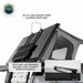 The Overland Vehicle Systems Sidewinder Hard Sided Roof Top Tent is manufactured with Premium 280G Rip Stop Waterproof Tent Body, Window Screens are 120G Environmental Fadeless Breathable Gaze, 2 Nitrogen Gas Charged Struts that are 35/5” long X 1”, 1 Adjustable Interior Pop-Up Strut, Ballistic Nylon Pull Strap, Aluminum Aircraft Grade Handle, Marine Grade 304 Stainless Steel Hardware, Universal, Adjustable Aluminum Channel, Military Specked Weatherproof Seal, and the Base is 1” Aluminum Honeycomb Insulated.