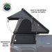 The Excursion Camper Shell Roof Top Tent Combo setup offers an unmatched combination of comfort, security, and durability for the ultimate outdoor experience. Crafted from premium rip-stop poly cotton fabric and aircraft-grade aluminum, this tent provides robust weather resistance and structural integrity without adding excessive weight. The retractable sleeping area with an entry hatch makes access easy while offering privacy, and the high-density 2” foam mattress ensures a comfortable night’s sleep every time. Safety features like an integrated LED third brake light and keyed alike locking latches protect both you and your belongings, while the slide-out telescoping aluminum ladder and anti-condensation mat add to the ease and comfort of setup and use. A high-visibility tempered window with a security cage allows for scenic views and ventilation with added security, making this setup an ideal choice for adventurers seeking a reliable and well-equipped camping solution. OVS follows Federal Motor Vehicle Safety Standards and uses 302 Certified Fabric.