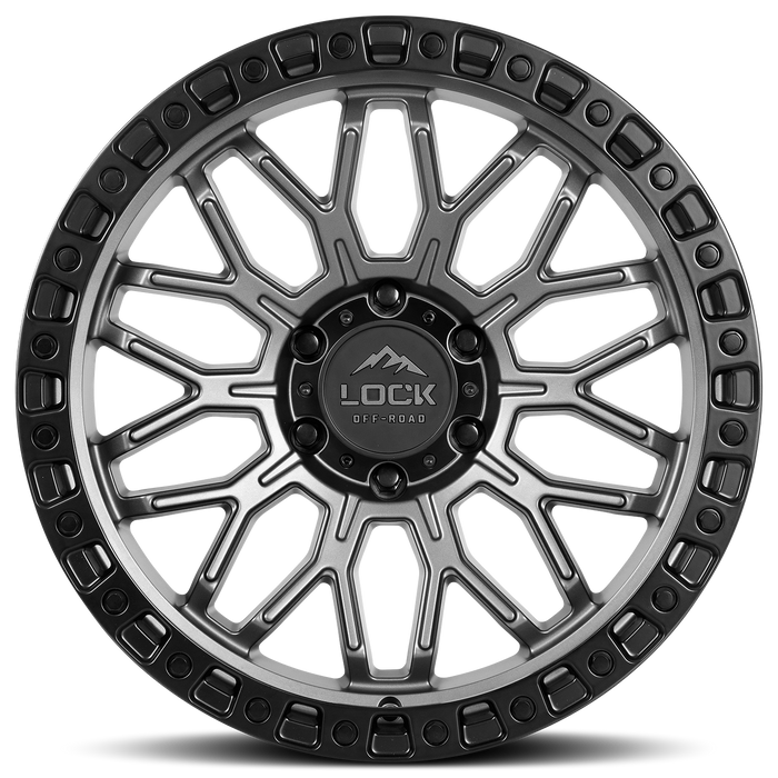 The Lock Off-Road Wheels Combat model incorporates a bold mesh-block pattern, utilizing intricate channeling for striking spoke details and reinforced structure. Drawing inspiration from modern military design, the Lock Combat seamlessly integrates with a timeless outer lip featuring vented chambering technology while enduring off-road specific design elements. Offered in Matte Black, Matte Gunmetal, and Matte Bronze, the TACT-coated finishes ensure a blend of visual appeal and durability, capable of withstanding extreme elements.