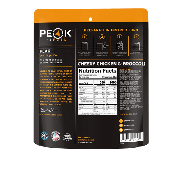 Packed With Protein. Peak Refuel is loaded with the protein your body needs to sustain or recover from a long day on the trail. Our meals have nearly double the amount of protein per serving than most outdoor meals on the market.