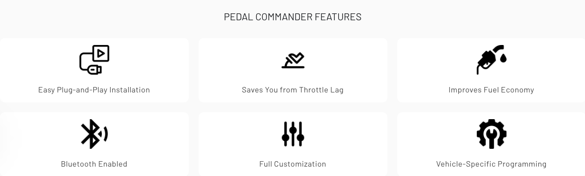 If you want your vehicle to respond quicker, Pedal Commander is the right tool for the job! Pedal Commander will allow you to customize the throttle response the way you want.
