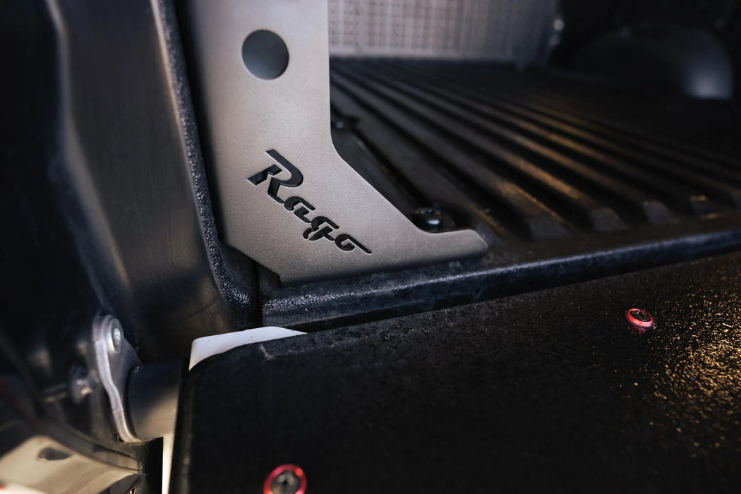 Installation is a breeze with our thoughtfully designed brackets. The brackets securely mount to the bottom of the bed using existing bolt holes, and are also mounted to the side of the bed which requires some drilling. These robust brackets ensure maximum strength and longevity, allowing you to confidently tackle any adventure.