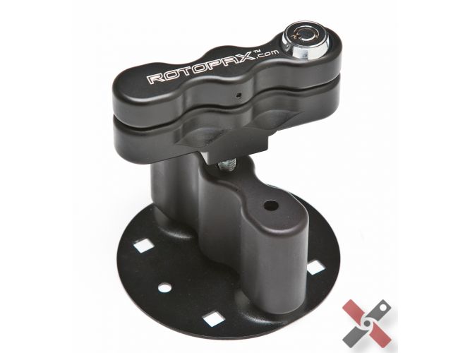 The basic Rotopax mount.  Use with the included base plate or remove plate to attach mount direct by bolting up through the bottom or down through the top.